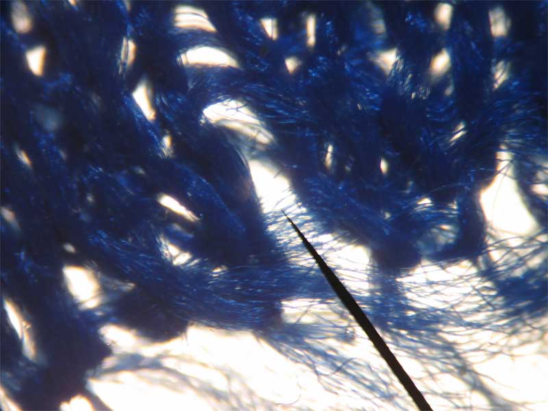 microscope shot of a section of the fabric at the rip line.