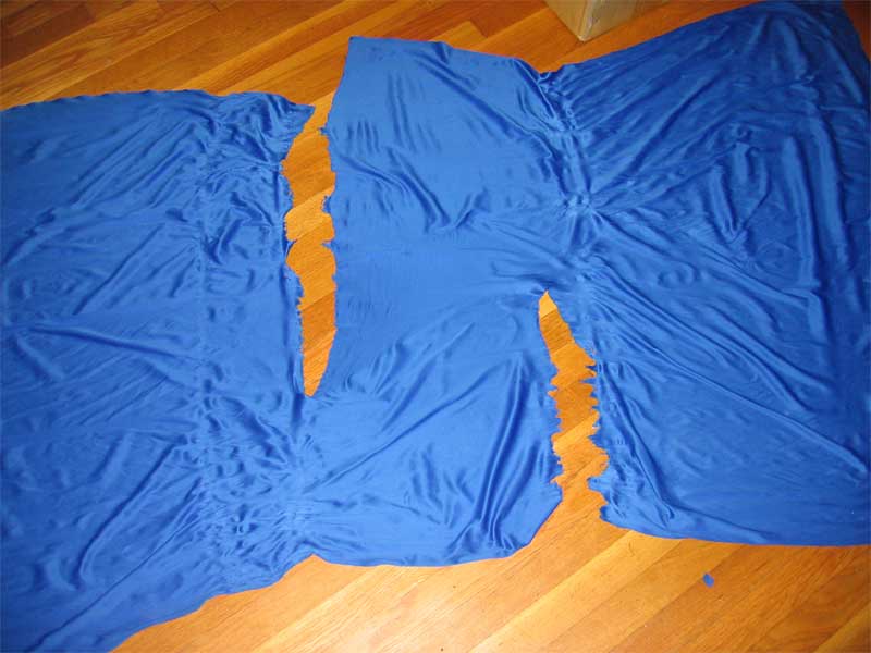 fabric sample laid out flat on the floor, and can see how the failure consists