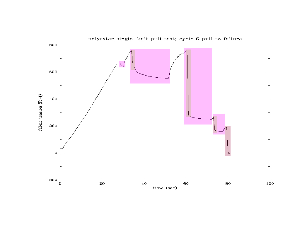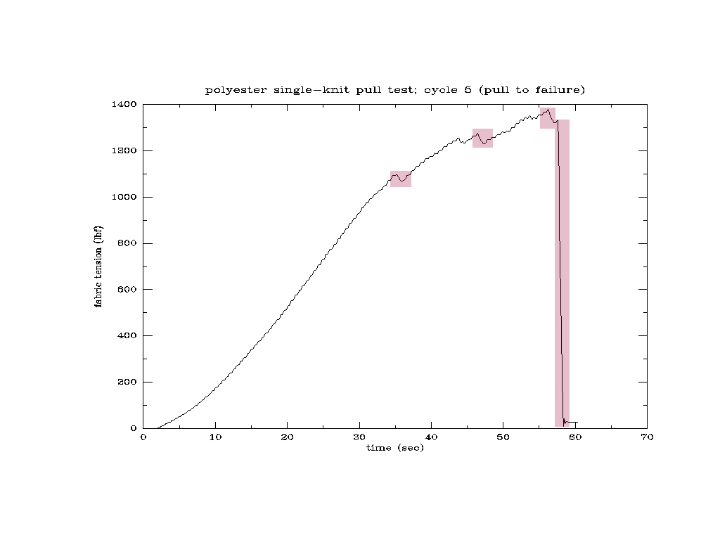 Fifth tension cycle. We pull until the fabric fails completely.