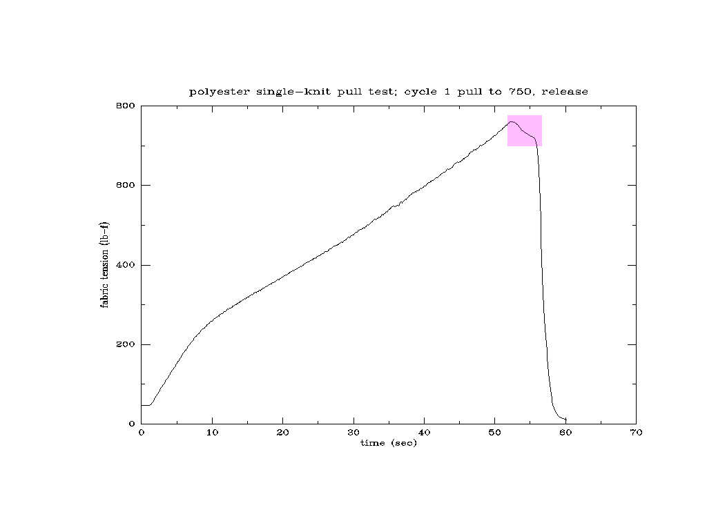 rip appears in the fabric. Tension drops to 1050 or so, and then holds steady.